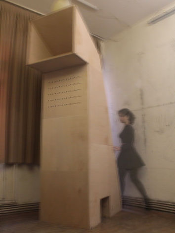 the audience to listen to the speaker without seeing them. In this way, the information is perceived as it comes from “the unseen.” This temporary invisibility aims to create a moment of interaction between different social groups, ages, genders, or cultural backgrounds, without having any preconceptions that outlooks can cause, and also, gives the comfort to the person to speak up anonymously.